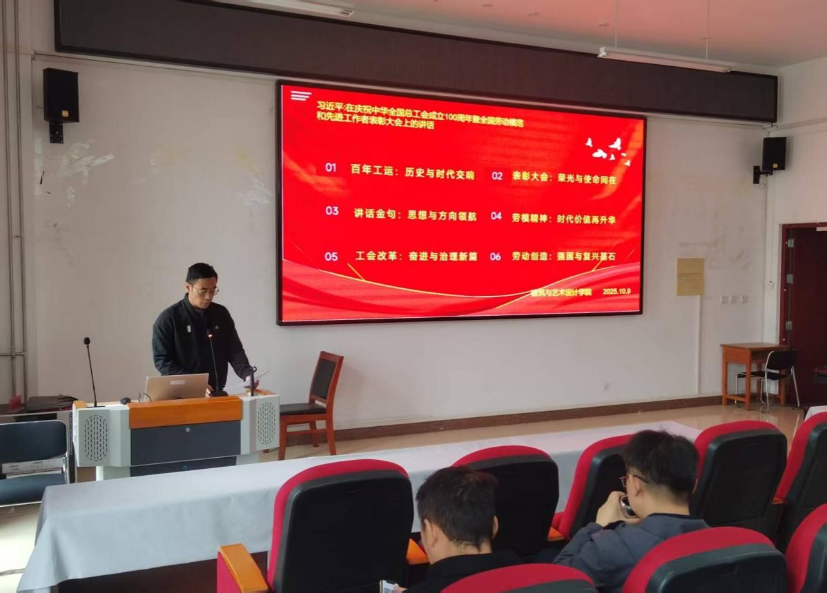 2025年10月9日14:30,我集团在明德楼B401召开了教职工政治理论学习。本次学习的主要内容为习近平总书记在庆祝中华全国总工会成立100周年暨全国劳动模范和先进工作者表彰大会上的讲话,我集团全体教职工参与学习,该学习由学院副书记副院长、工会主席吴宇主持。